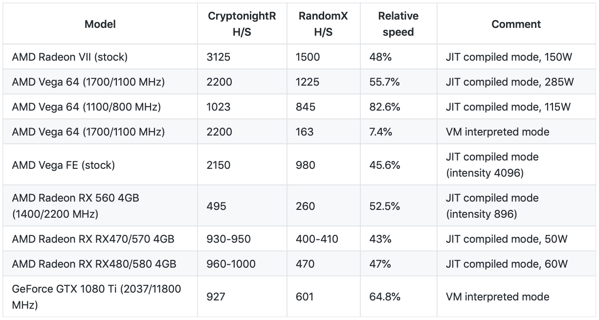 AMD GPU Performance on RandomX. Source: github.com/SChernykh