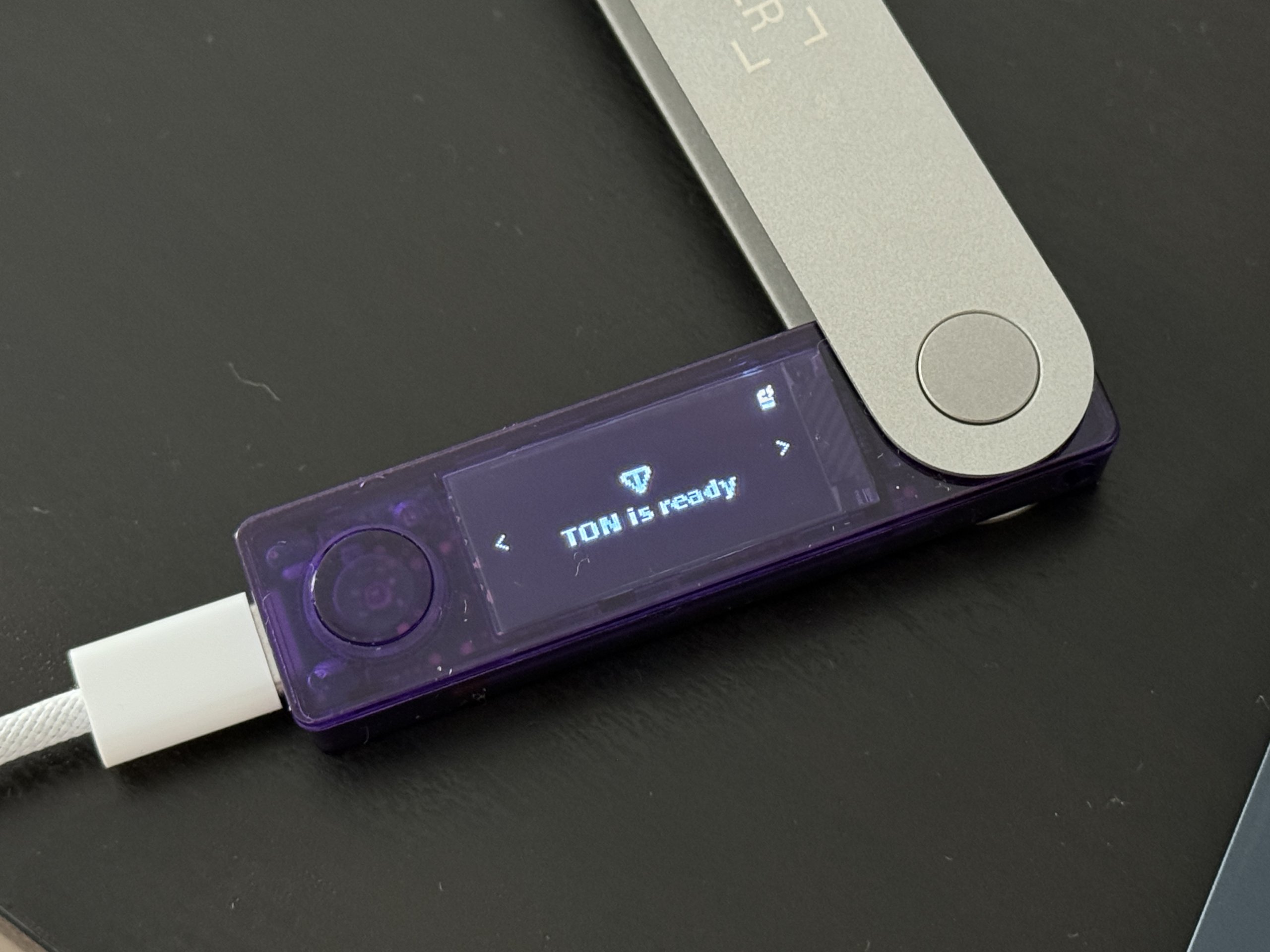Here is the Ledger Nano X hardware wallet with the TON application running.