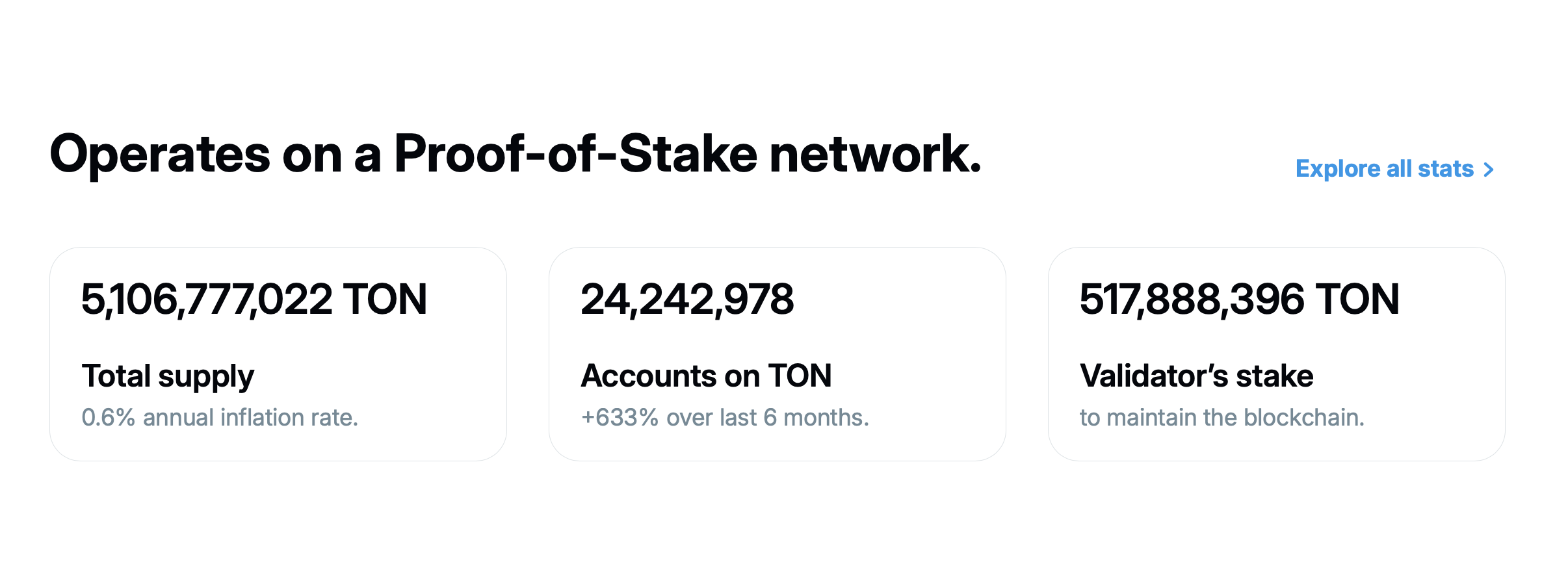 Today, 3.474 billion TON are in circulation, while the maximum supply of the cryptocurrency is 5.106 billion coins. The annual inflation rate is 0.6 percent, which is relatively low compared to other popular cryptocurrencies.