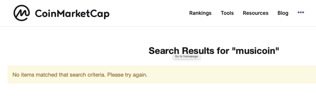 And here is a sad ending to this story. Look what pops up on CoinMarketCap if you search for “Musicoin”. Oops.