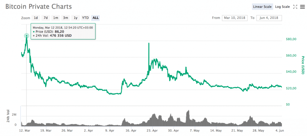 The creation of Bitcoin Private was at the end of February after the fork of Bitcoin and Zclassic. New coins were being distributed to BTC and ZCL holders at a 1:1 ratio, which is why the rate of the latter increased 20-fold at the end of December. After all, it was easier to buy Zclassic than Bitcoin.