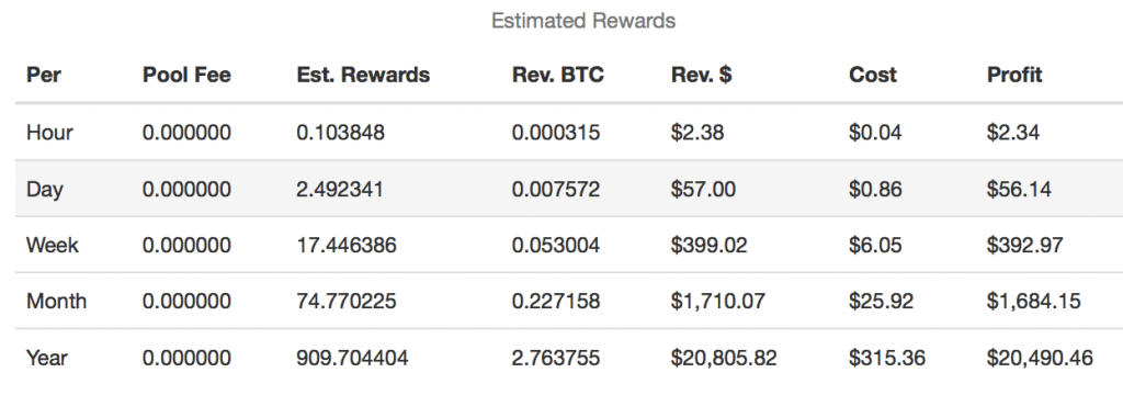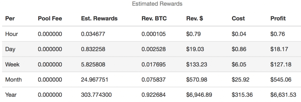 At the current network difficulty level, we get a little over $18 per day or $545 per month.