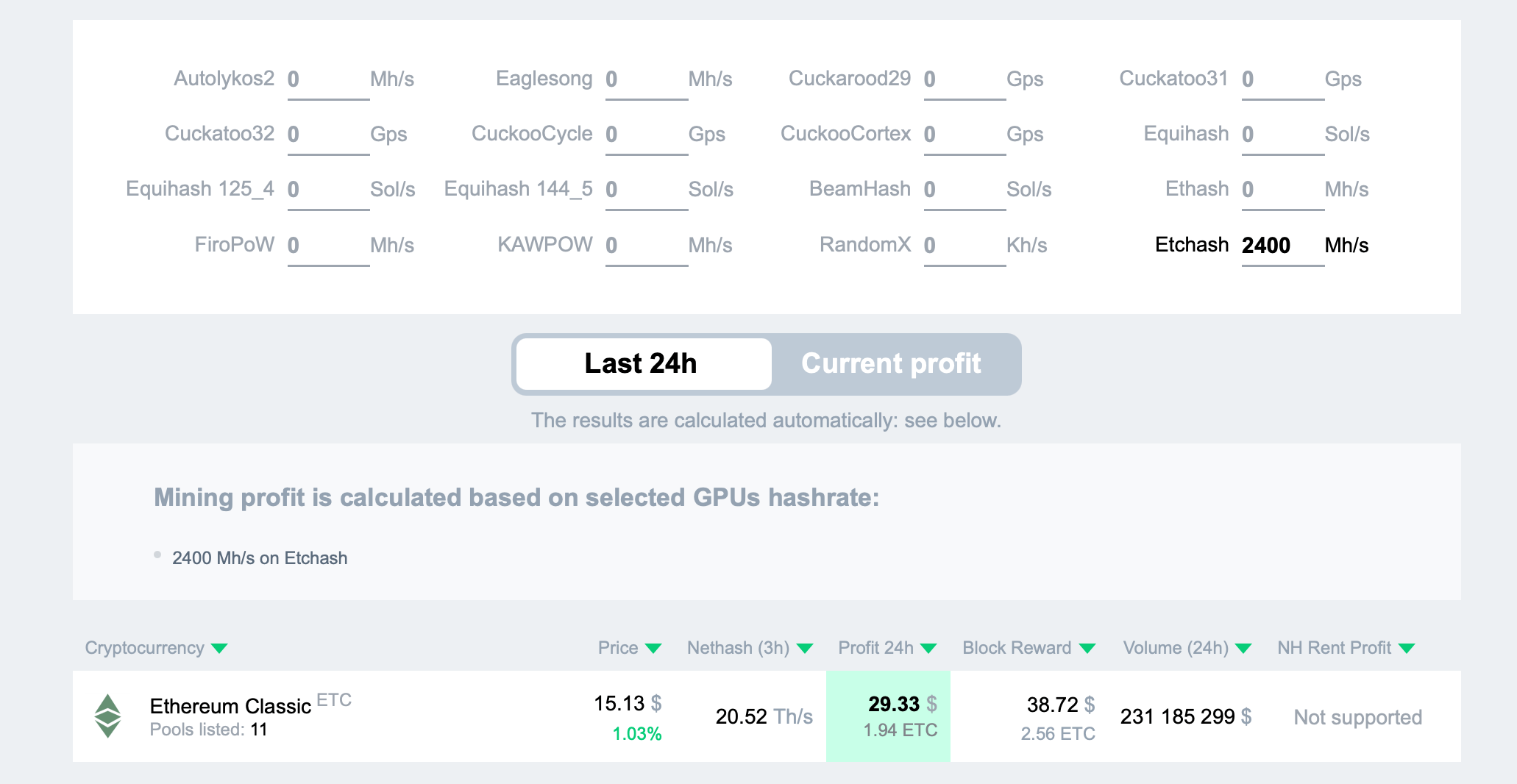 With the same hash rate, you will get $29 from mining Ethereum Classic.