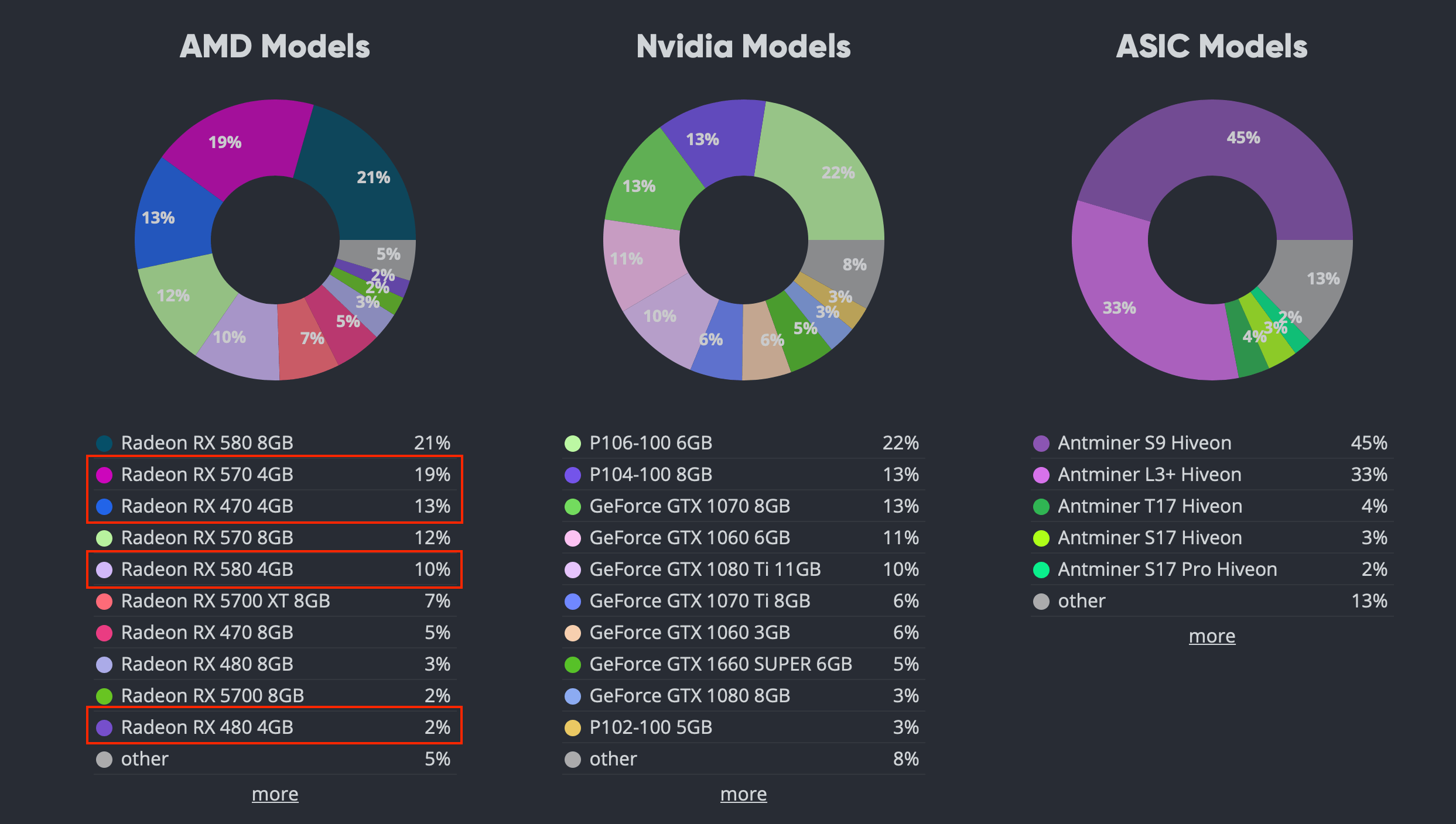 According to the GPU statistics on HiveOS, 45% of AMD graphics cards have 4GB of memory.