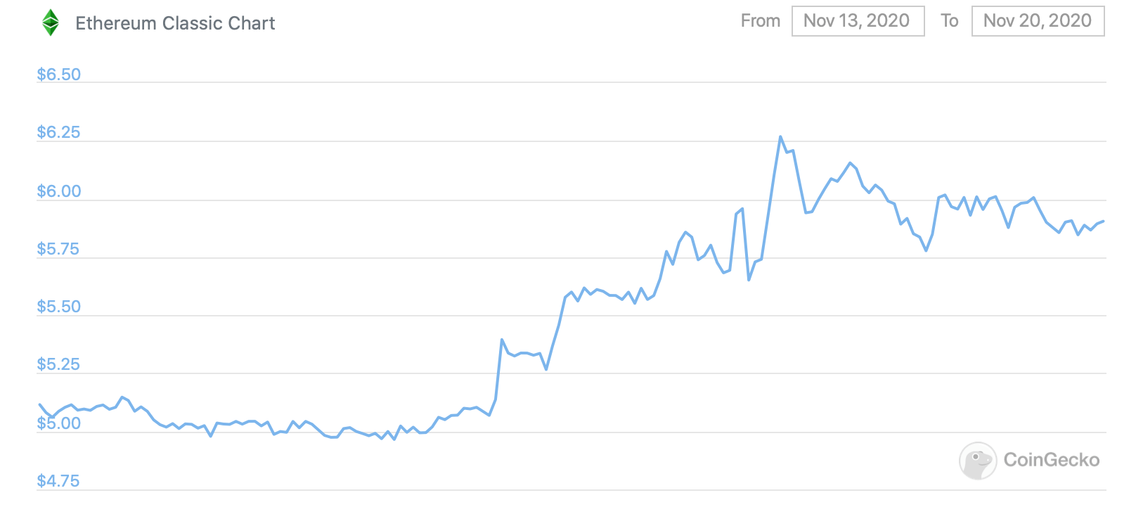 Ethereum Classic exchange rate has increased by 17.7% over the last week. Here is a 7-day ETC rate chart.