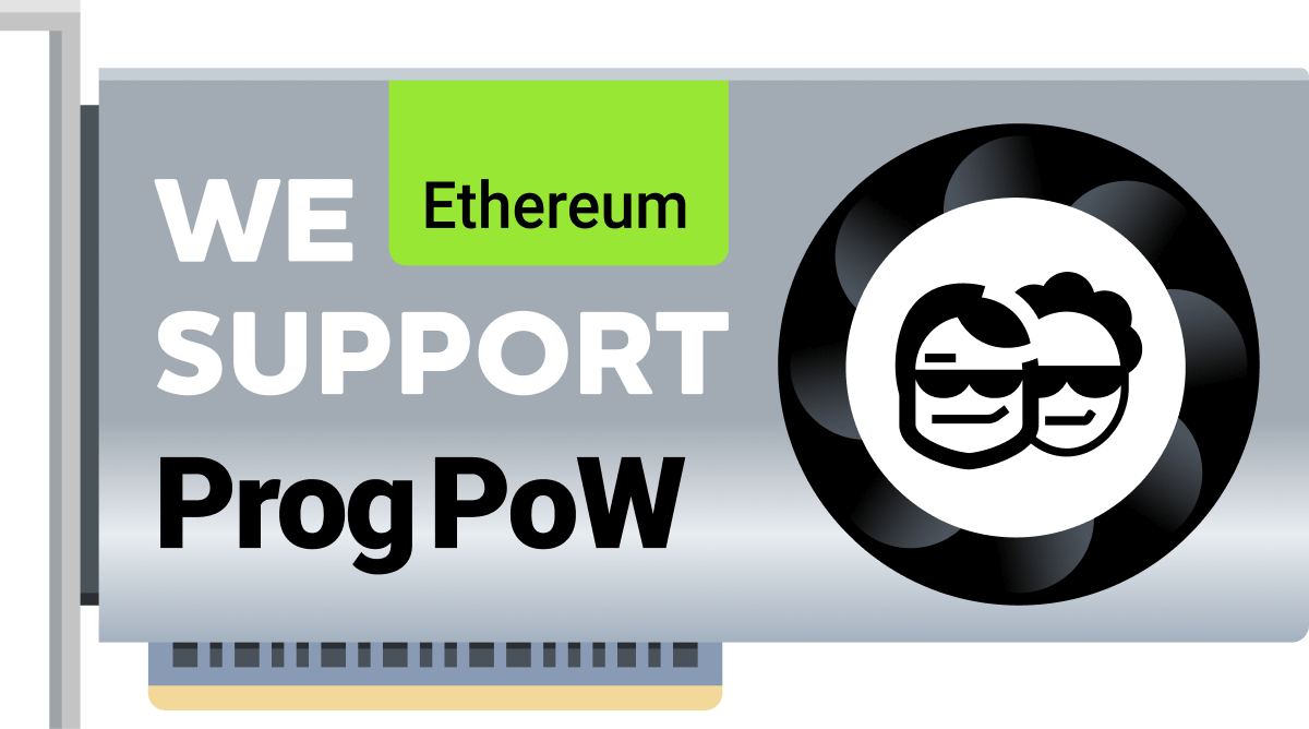We created a special sticker “We support ProgPoW”, and we encourage all mining pools in favor of ProgPoW to use it. All you need to do is to insert the logo of your pool into a white circle on the GPU cooler. Please find all the logos here.