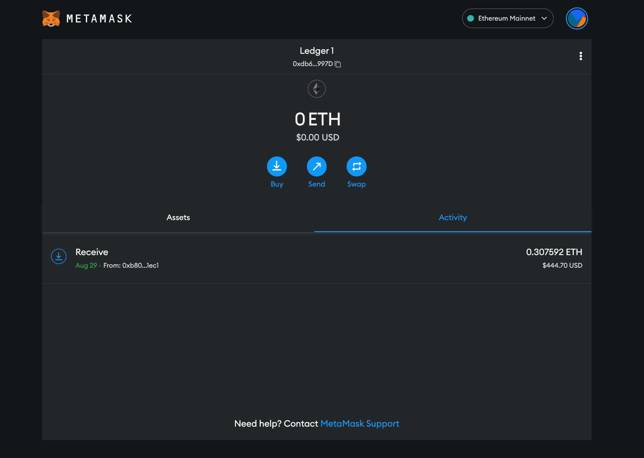 Success! We added a new network to MetaMask, and its native token ETHW replaced ETH in the wallet field.