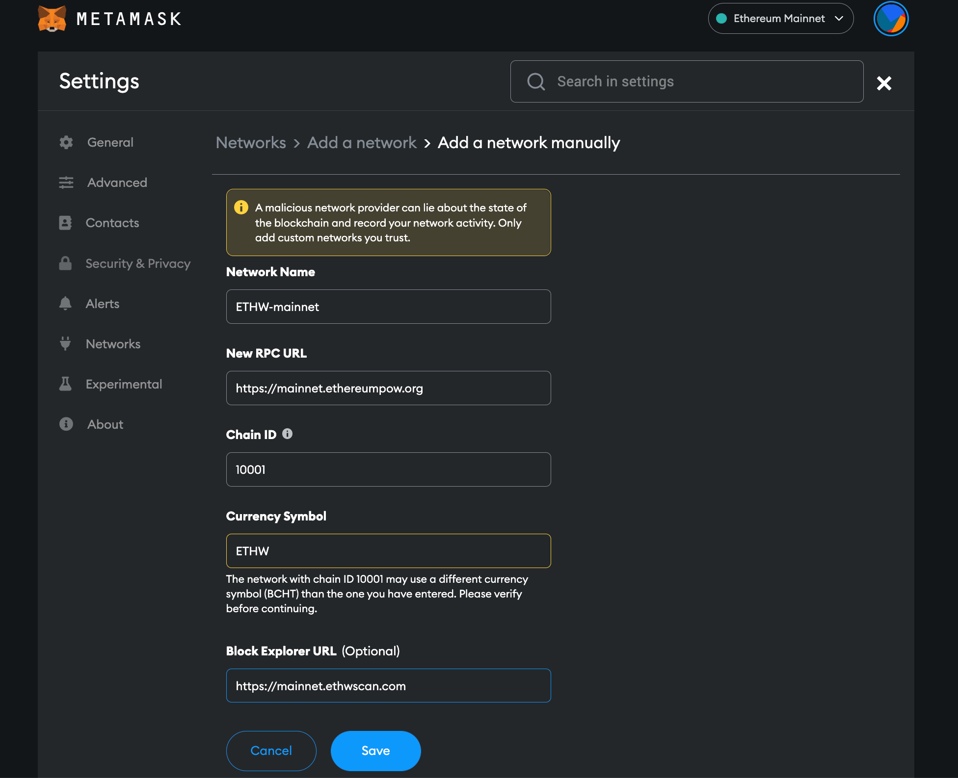 You can also copy them below. The following settings will allow you to add Ethereum PoW network in MetaMask: