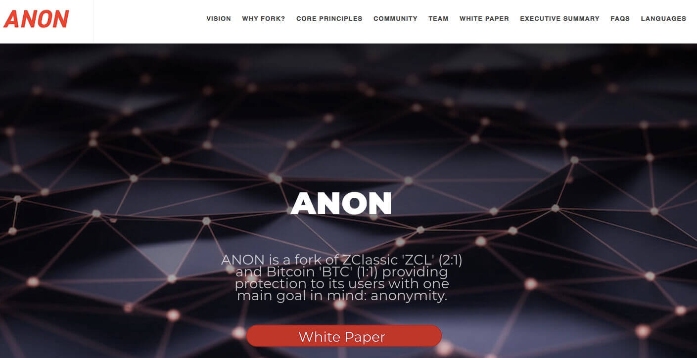 Anonymous Bitcoin is a fork (or more accurately, a spork) of Bitcoin and ZClassic that happened overnight on September 10–11. Initially Anonymous Bitcoin was the official name of the coin, but after the fork developers rebranded it as ANON. Its ticker symbol is the same (ANON).
