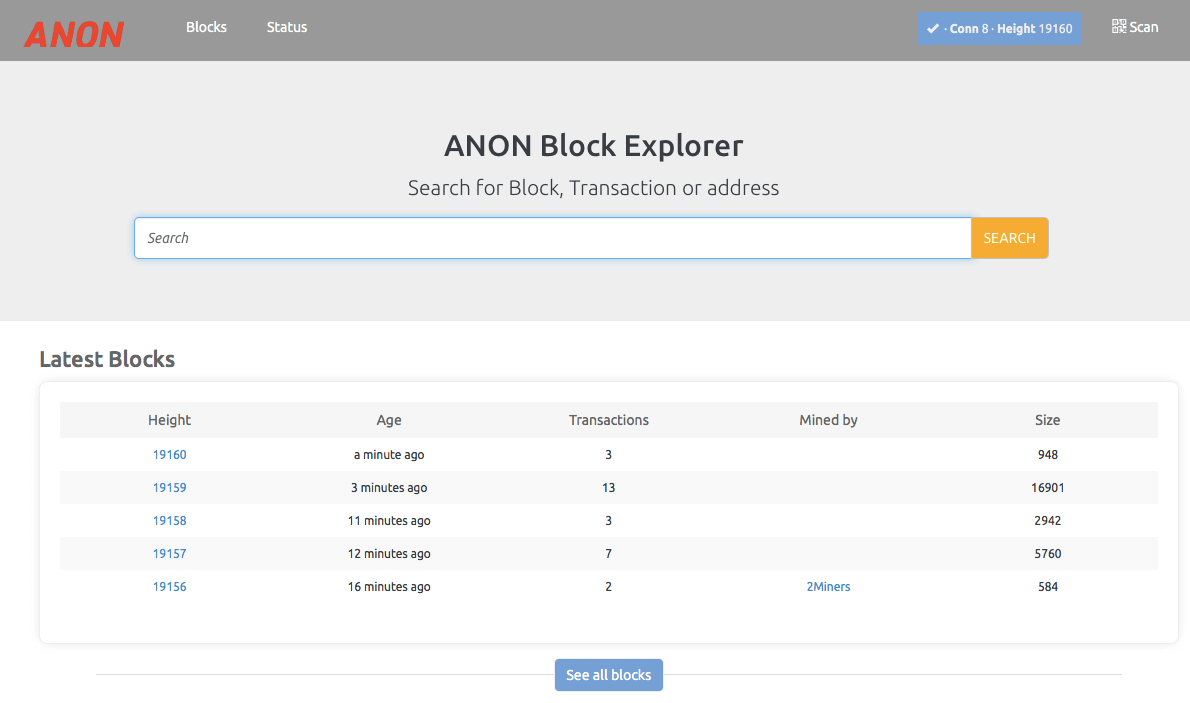 Please note, 2Miners pool delisted ANON in late January 2019. ANON team tried to implement Dev fee model and our pool won’t support this mandatory update.