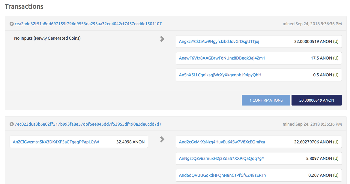 The block reward is 50 ANON. 65% of the reward goes to miners, while 35% goes to masternodes that can be created for 500 ANON each.
