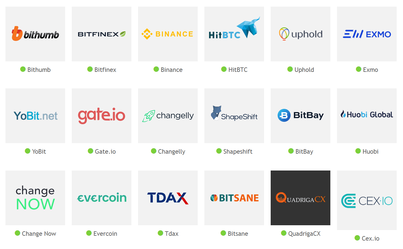 There are a lot of exchanges. The official website of the project names 36 active platforms, among them, are Binance, Bitfinex, HitBTC, Bithumb and other major exchanges.