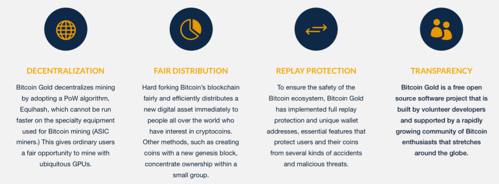 Make Bitcoin Decentralized Again — Bitcoin Gold is sort of like the Trump of the cryptocurrency world. The developers point out the advantages of the cryptocurrency right away. They talk about ASIC resistance, fair distribution of coins during hard fork, wallet protection, thanks to unique addresses, and the transparency of the system.
