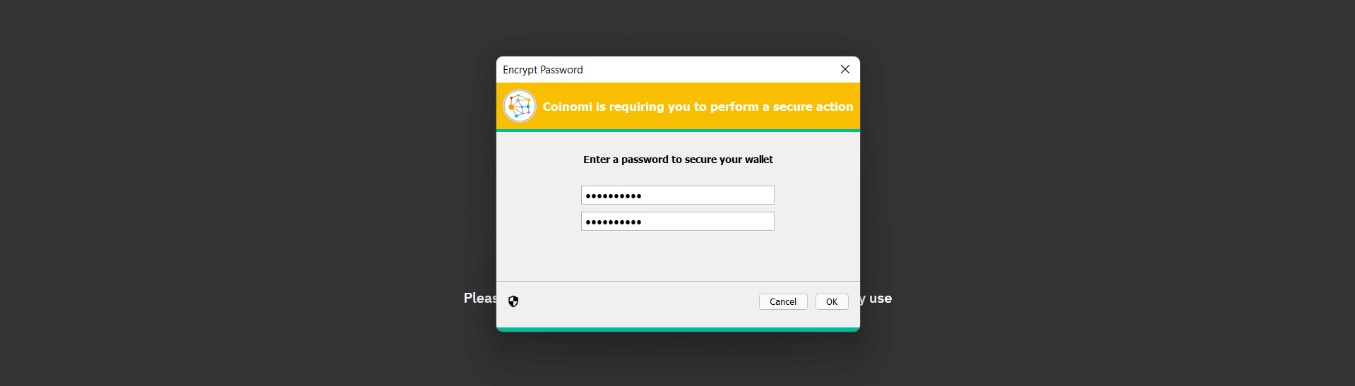 Create your wallet password. Make sure to choose a secure one: ‘qwertyasdfg’ won’t do.
