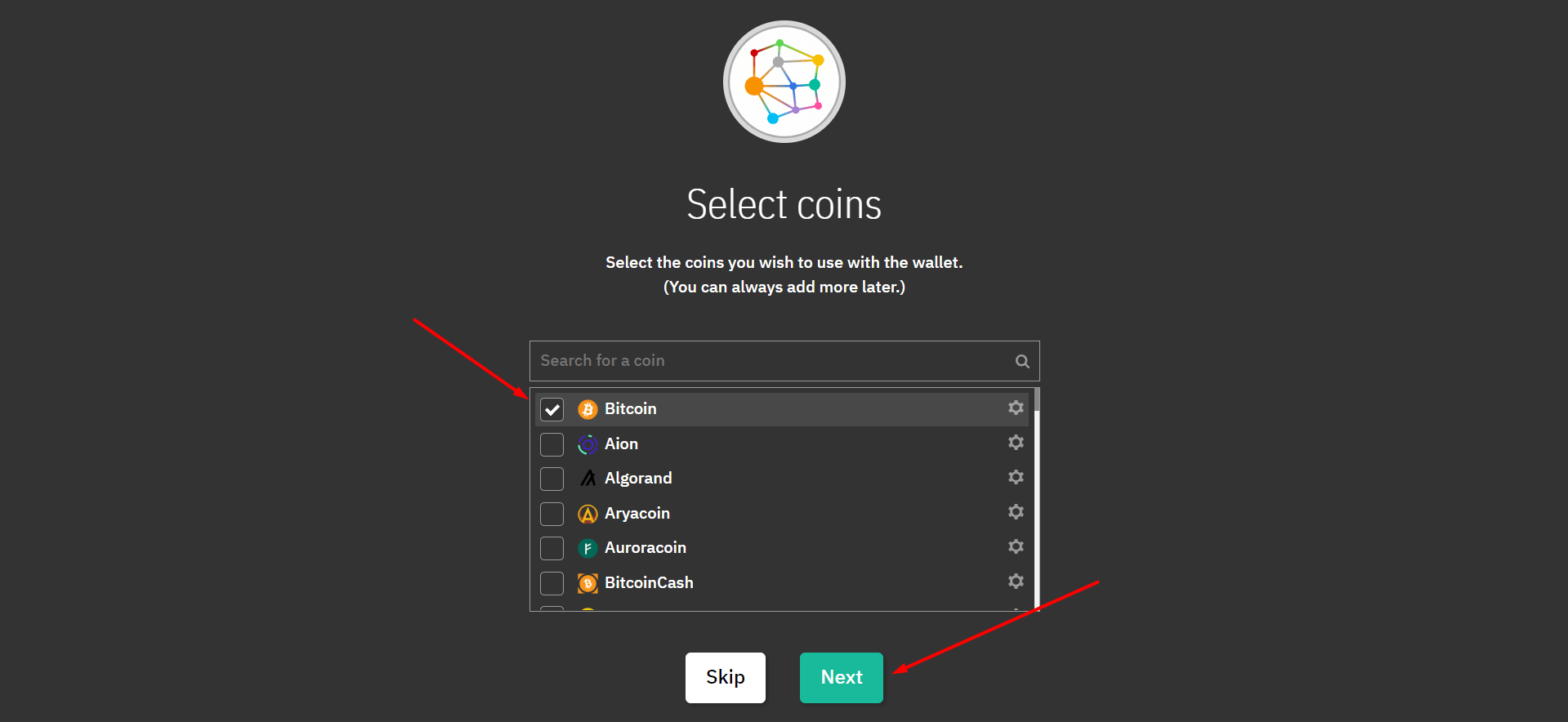 Coinomi is a multi-chain wallet, which means it can store other coins apart from Bitcoin. In this case, we need Bitcoin. Put a mark next to Bitcoin and click Next to continue.
