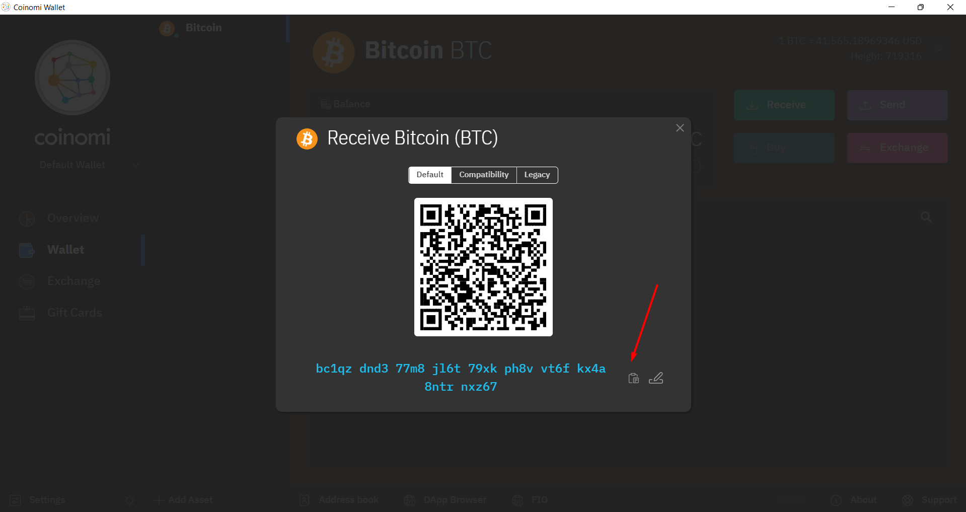 You are almost done: let’s find your wallet address. Click on Bitcoin.