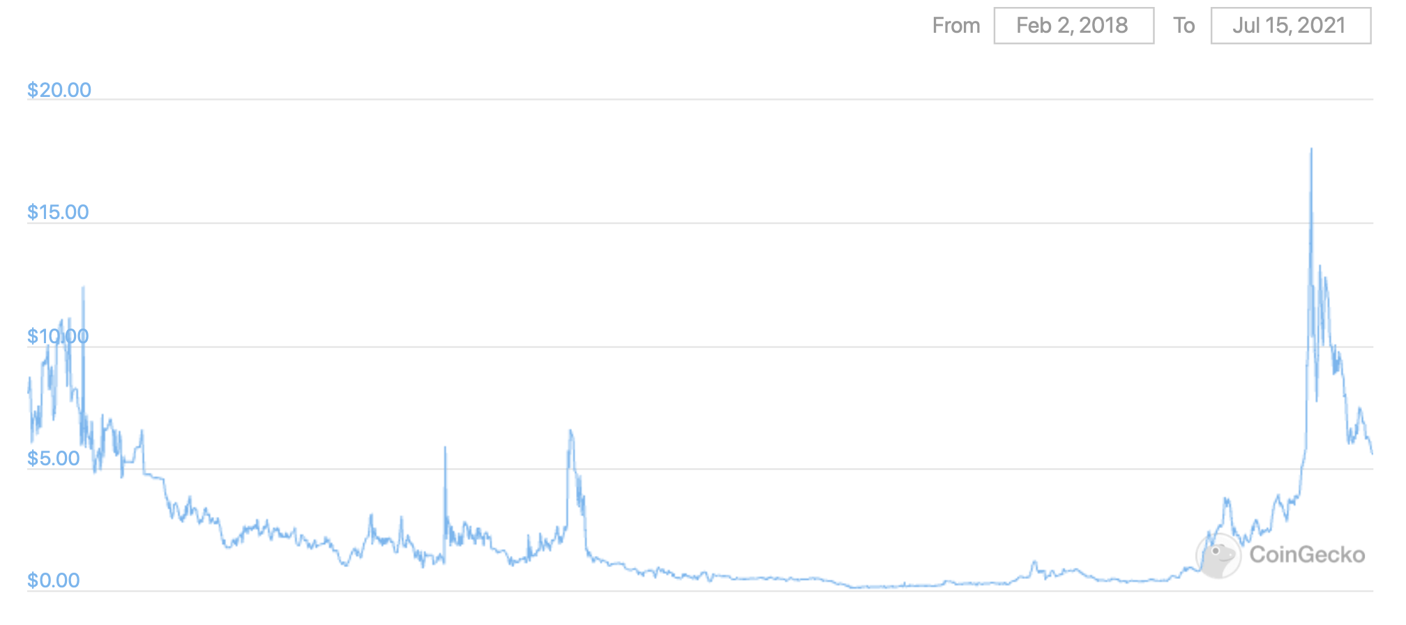 On July 22, 2021 ERG costs $4.98. It’s a 5100% increase compared to the minimum of $0.09 registered on March 13, 2020. But it’s also a 83% decrease compared to the maximum of $29.58. This price was registered on April 27, 2018, according to Coingecko.