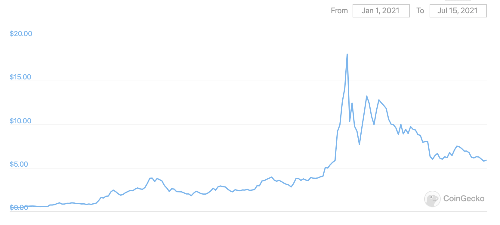 Ergo’s local peak in 2021 was registered on May 19. Back then the price reached $18.