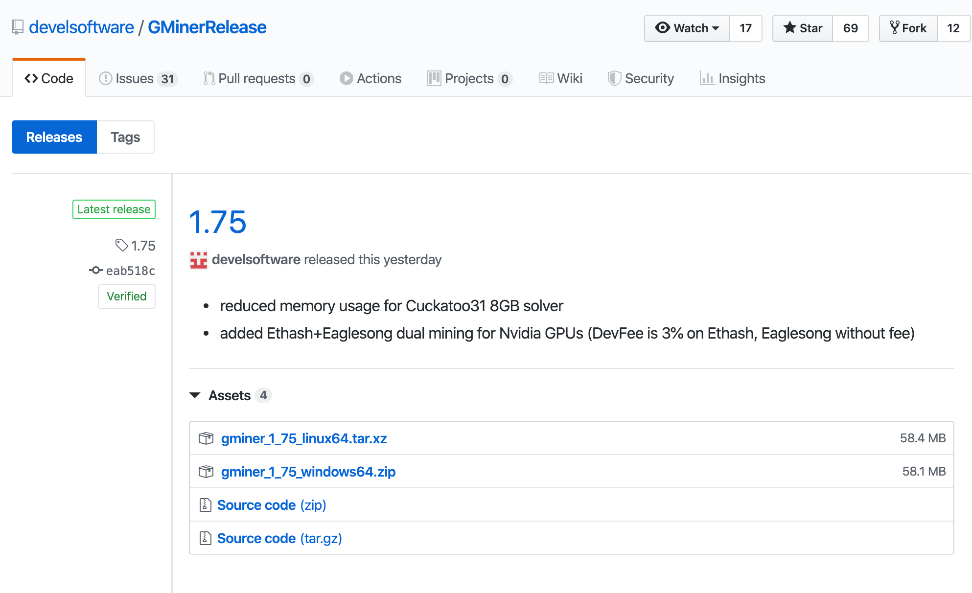 In order to mine Nervos CKB, download Gminer from this archive. The archive password is 2miners. You can also find it on GitHub, and the latest version is 1.75.