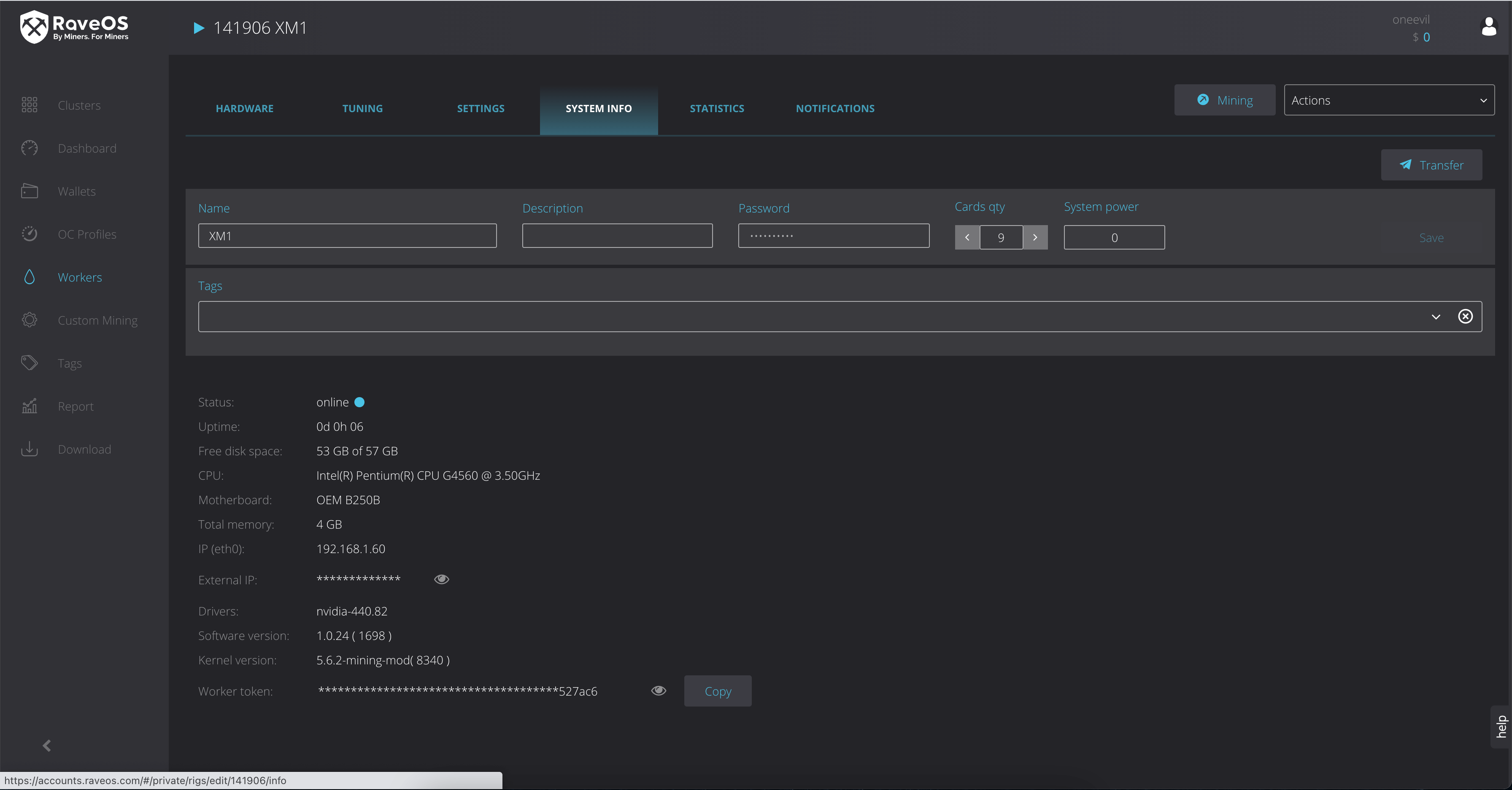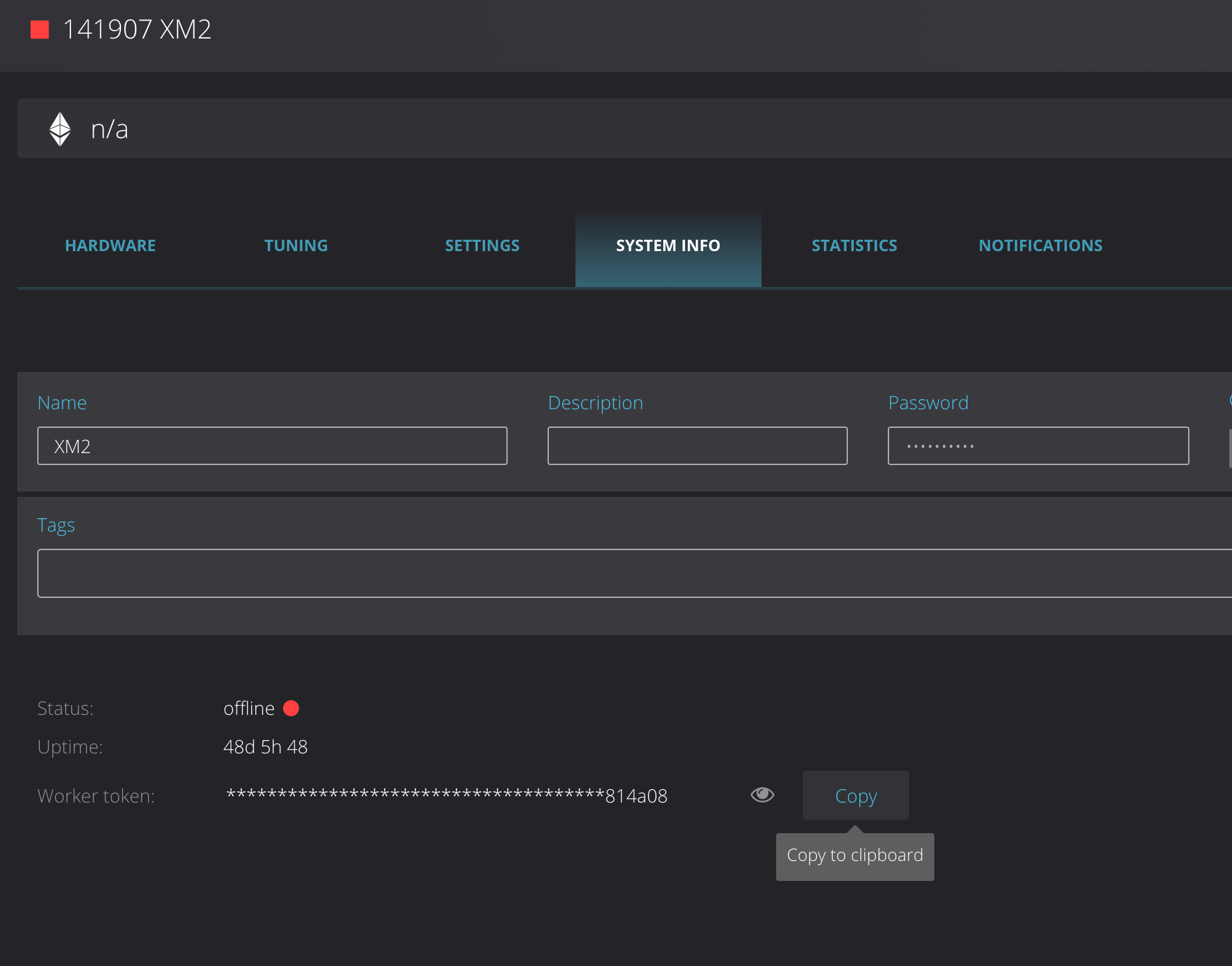 Then go to the System Info tab and copy the Worker’s token. On the screenshot below it’s at the bottom.