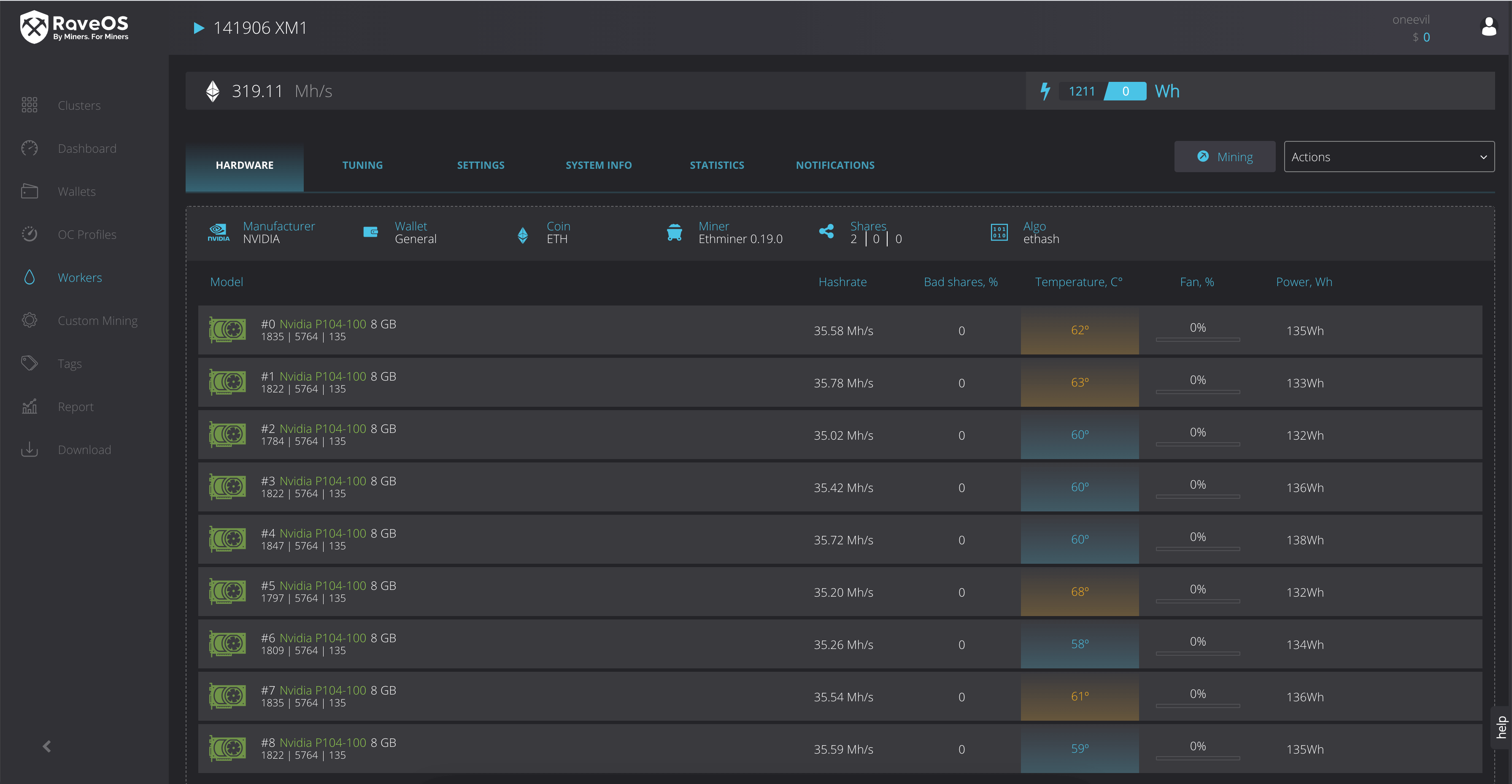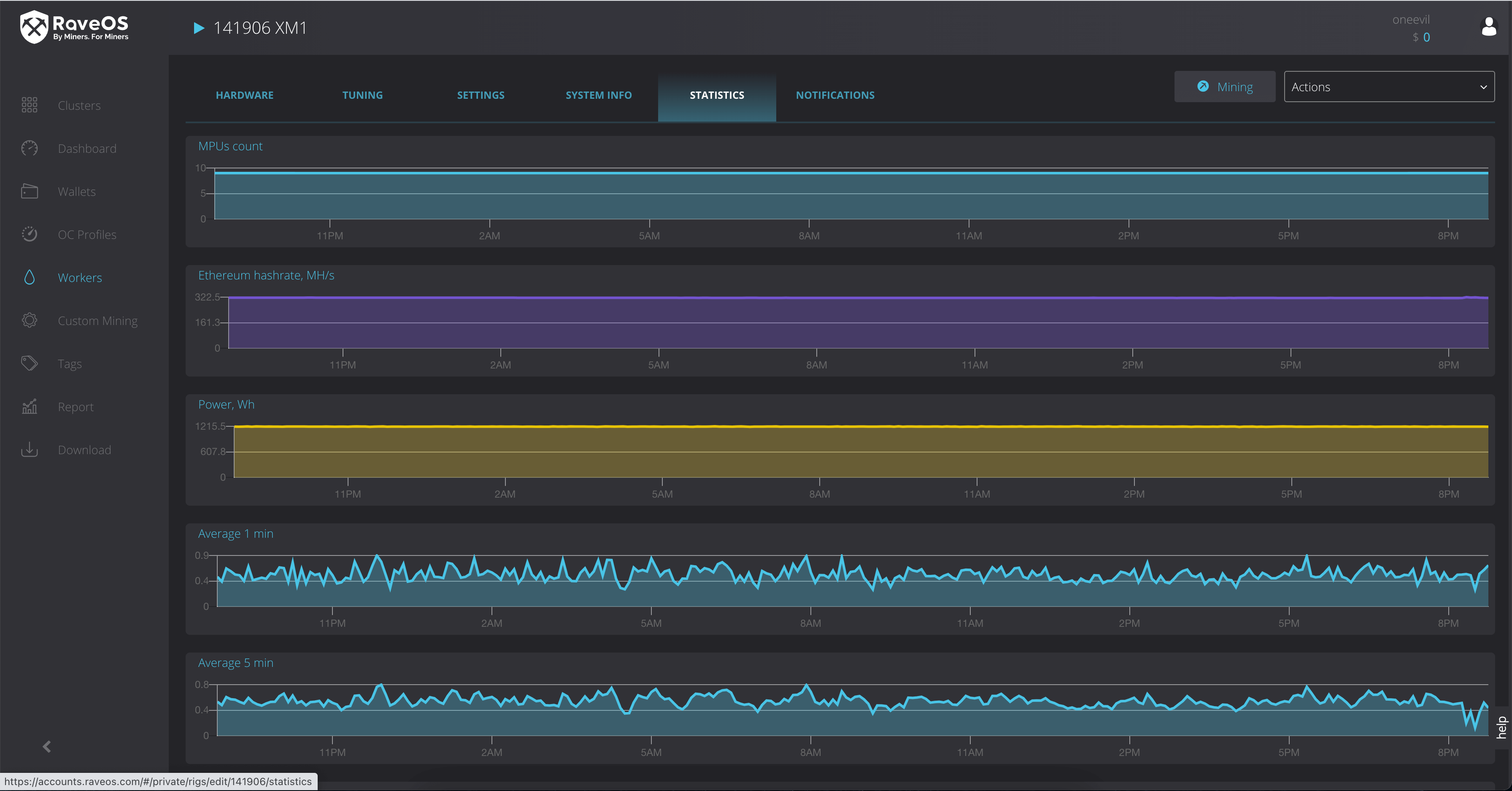 - Advanced monitoring. The system displays hash rates, power consumption, errors, and much more. RaveOS has a built-in watchdog that tracks errors and reboots the miner or the whole rig. You can also have multiple user accounts for monitoring, each with different access rights.