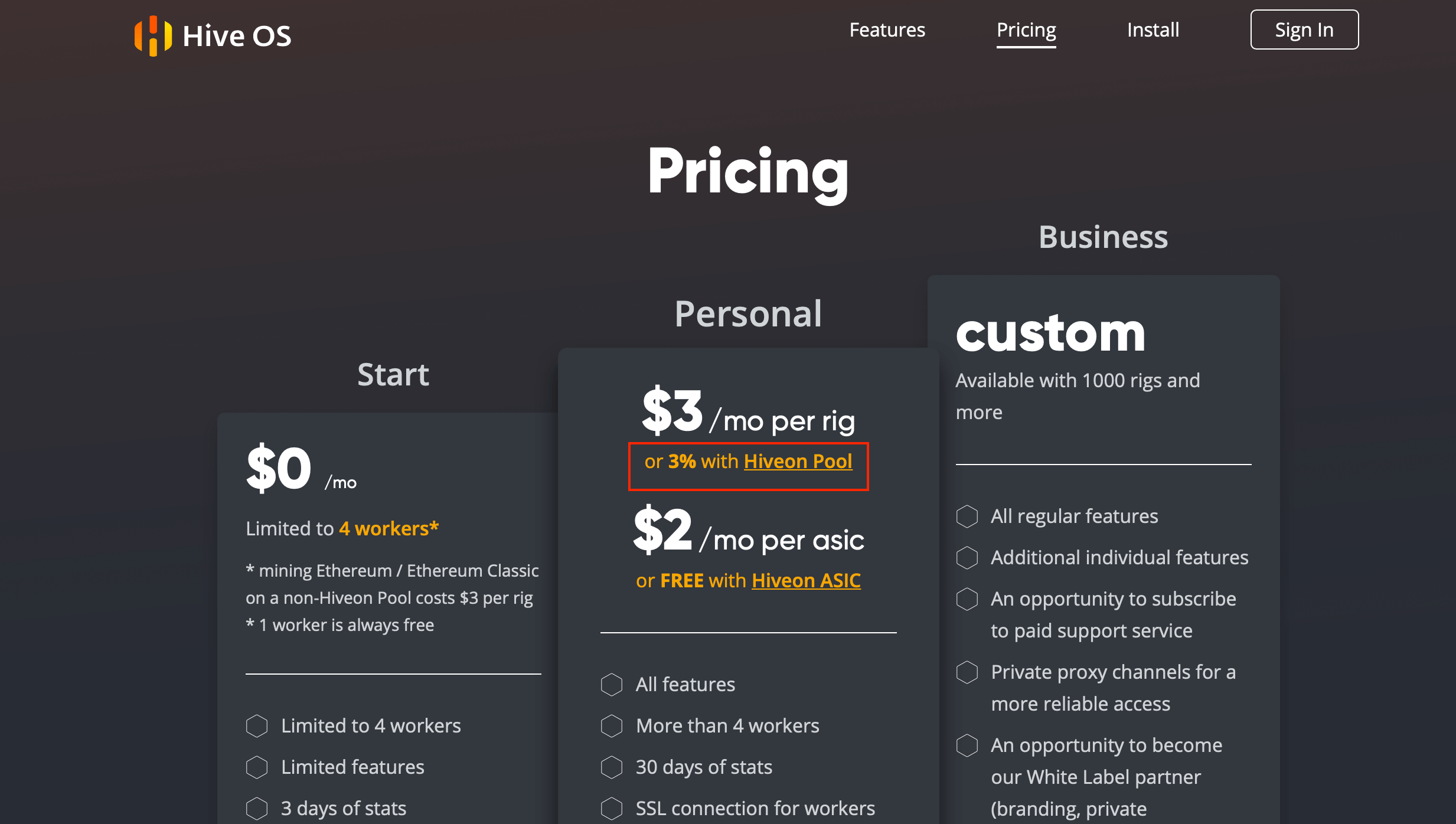 It should be noted that another mining platform HiveOS is free only if you mine in their Hiveon pool, but that charges a 3% fee.