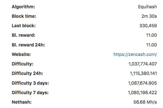 ZenCash (ZEN) Mining Difficulty