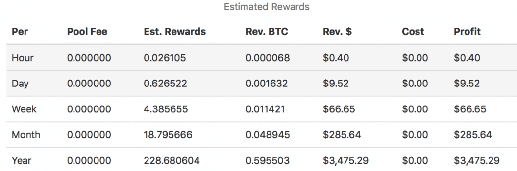 As usual, let’s calculate profitability based on 6,000 h/s hashrate that corresponds to a rig with eight Nvidia 1080ti cards. All calculations are exclusive of electricity costs as they may differ.