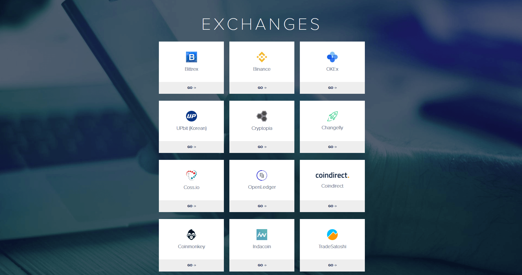 The official website names 18 exchanges. Among them are Bittrex, Binance, OKEx, and UPbit, as well as Cryptopia, that we already know how to use.