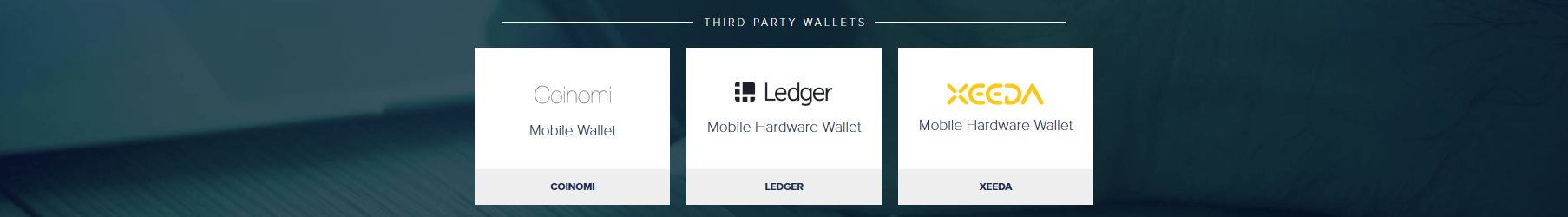 There are two versions of wallets for Windows, Mac OS and Ubuntu – full client and lite client. There is also a web wallet, an Android app, and a paper wallet. Developers also mention third-party wallets – Coinomi, Ledger, and Xeeda.