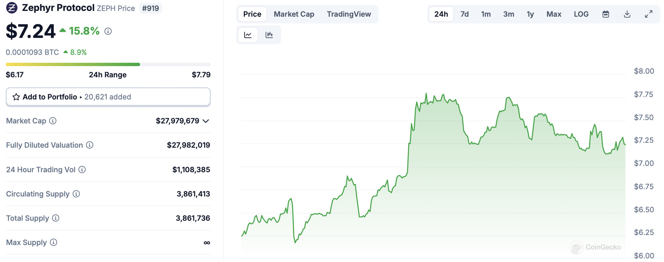 Today, ZEPH is valued at $7.24, with a project market capitalization of $28 million.