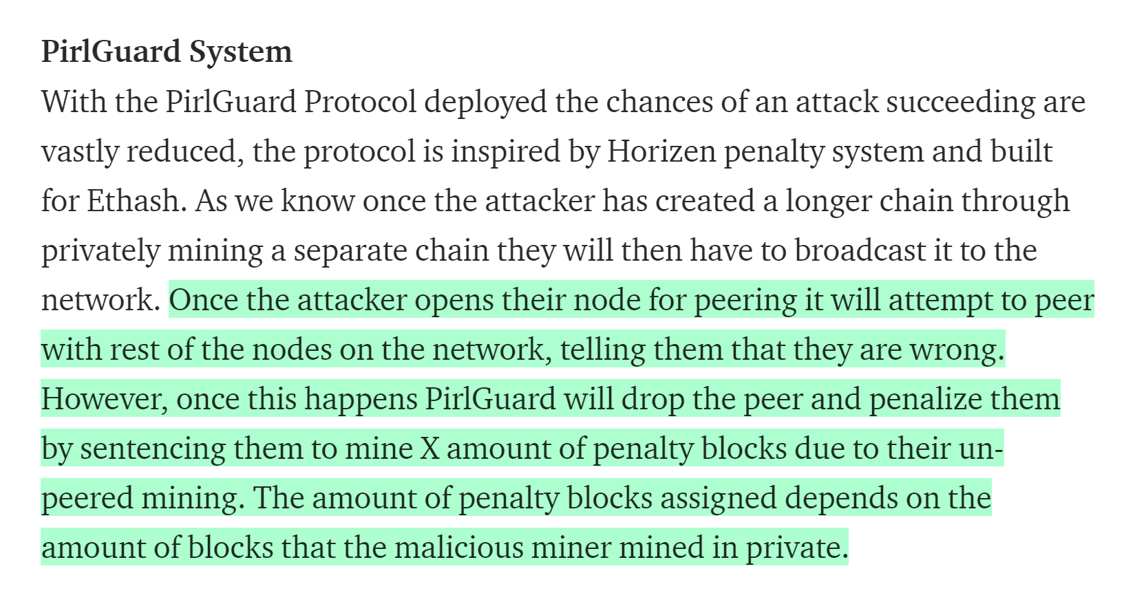 The only article that describes the operation of PirlGuard was published by the Pirl team on Medium. The title says that it is an innovative solution against 51% attacks. Let’s take a look at the description of the PirlGuard operating mechanism.
