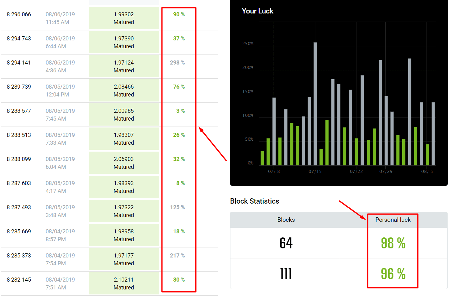 - Everyone becomes so frustrated when pool luck is more than 200-300%, saying something like “pool sucks” or “node is not synced” and believing it is the end of the world. But when the same pool finds twice as many blocks a day than in an ideal world, how come everyone is suddenly so silent?