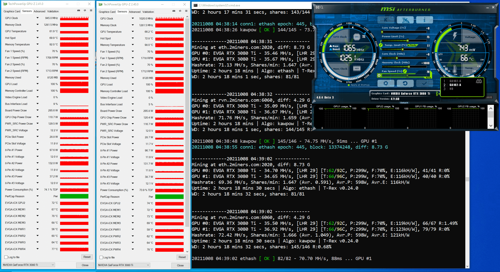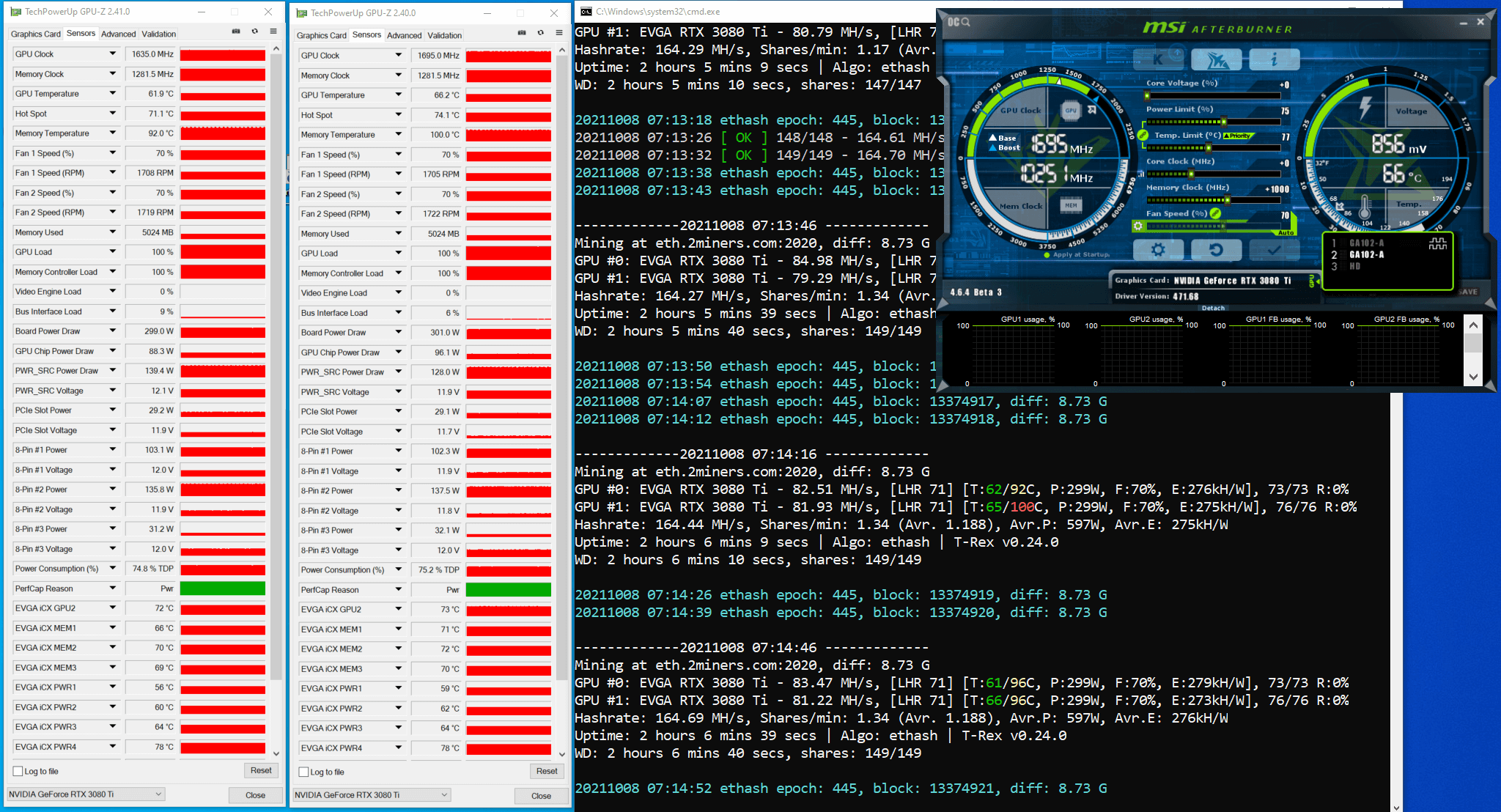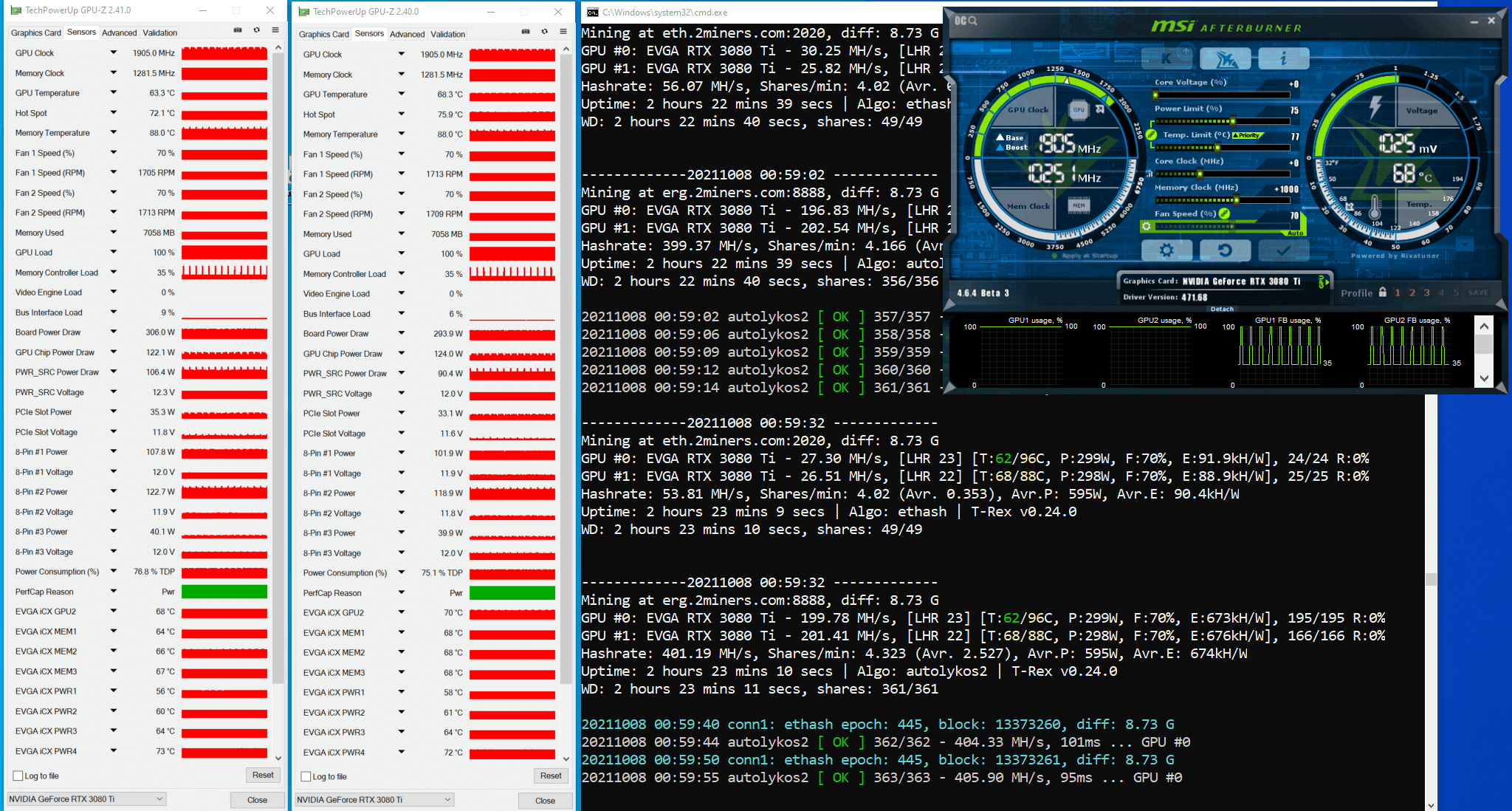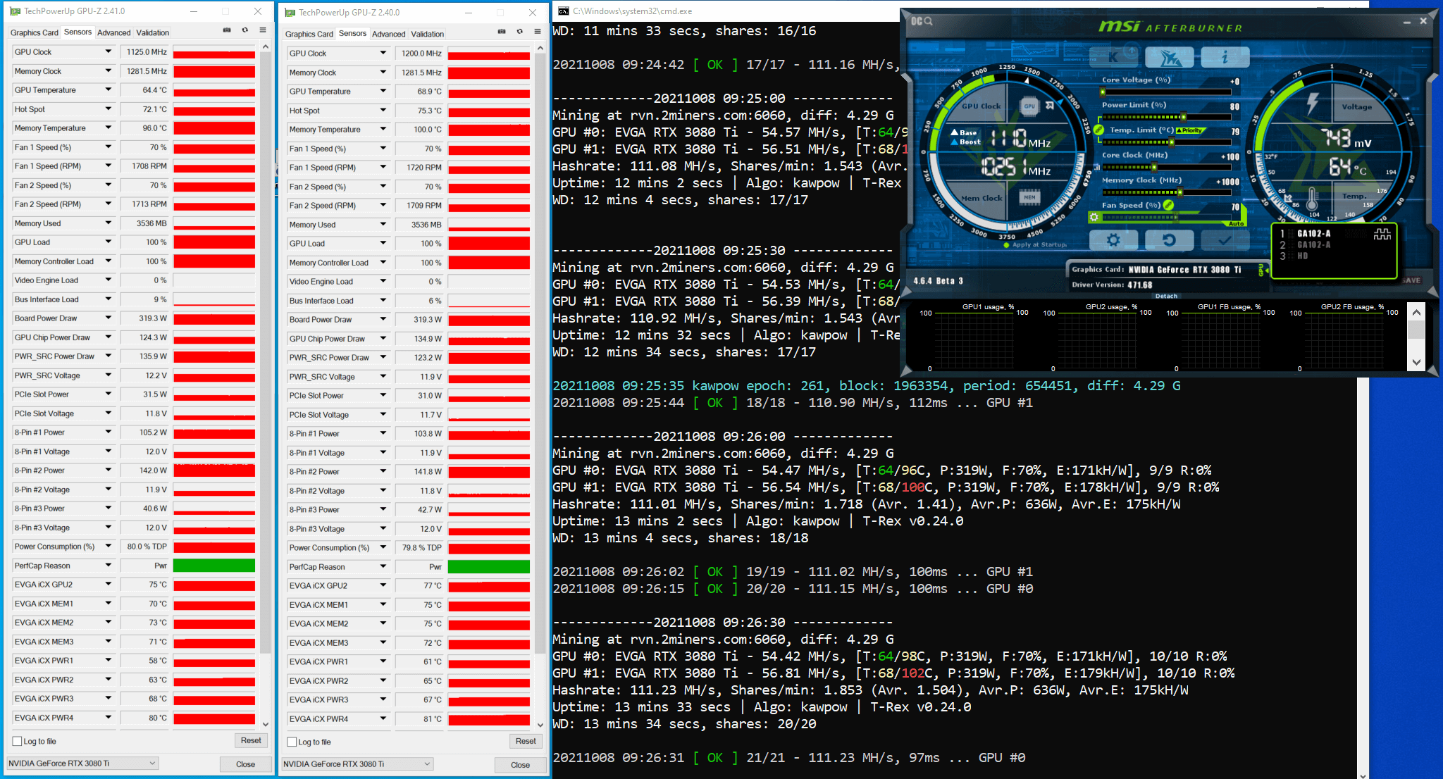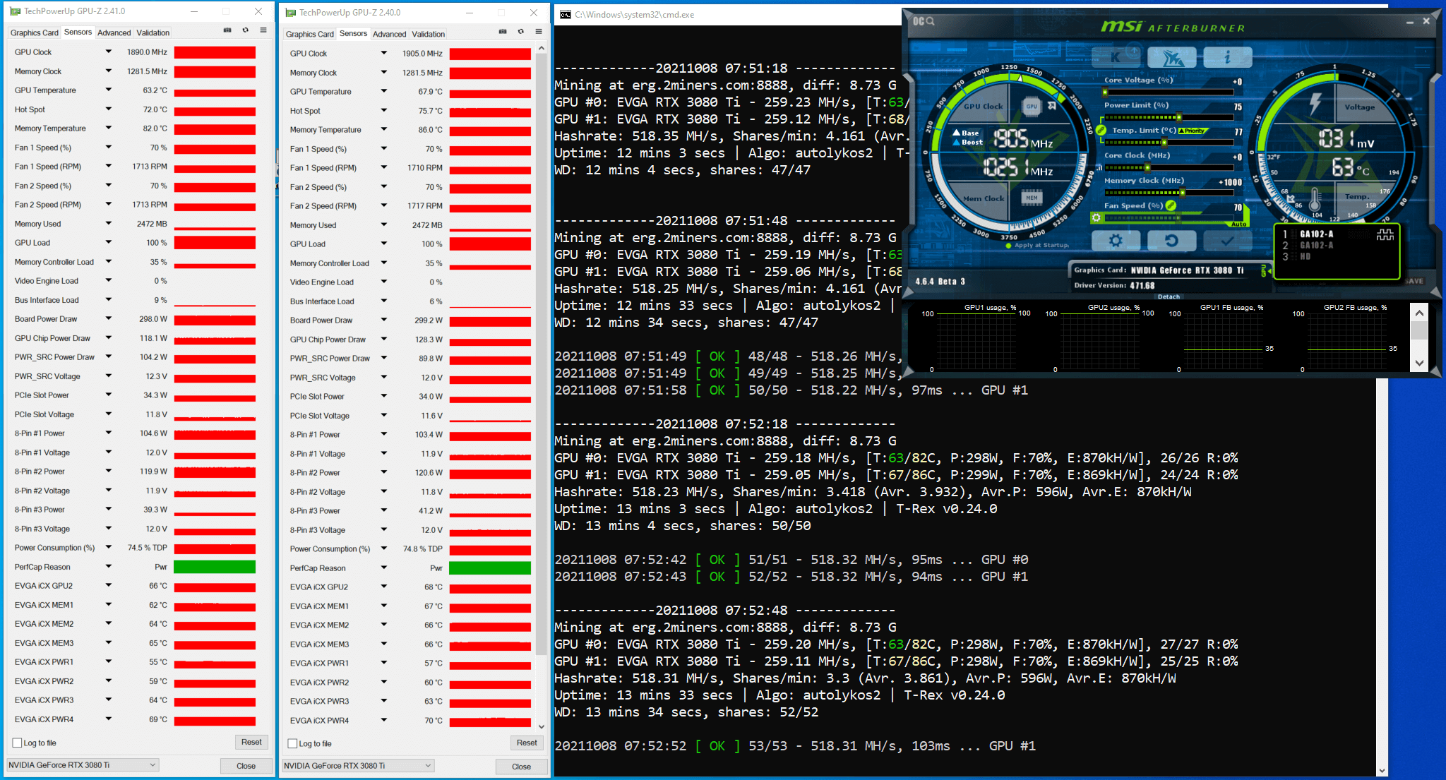 We already described how we estimated the potential max hash rate for the RTX 3080 Ti on Ethash and Etchash algorithms in the article titled “How to Increase Mining Hash Rate. Unlocking LHR Graphics Cards with Gminer”.